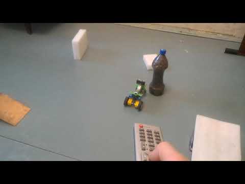 Робот катается сам, реагируя на препятствия серией из 20 команд, введенных с ИК пульта: