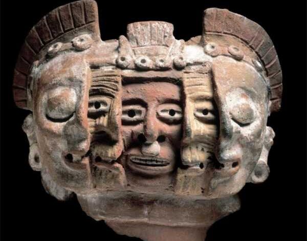 Три лица из обожжённой глины, олицетворяющие цикл жизни и смерти, из древней Мексики
