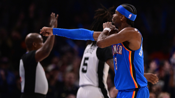 Баскетболисты «Оклахома‑Сити Тандер» переиграли «Сан‑Антонио Сперс» в домашнем матче регулярного чемпионата НБА.