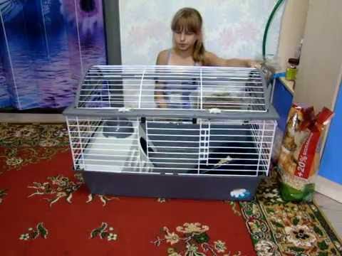 Клетку лучше брать метровую, а если питомцы крупные — 1,40 м, с не скользким дном. Поддон для клетки предпочтительнее пластиковый, не решетчатый. Нужно приобрести кормушку для сухого корма, автоматический поильник и ясли для сена.